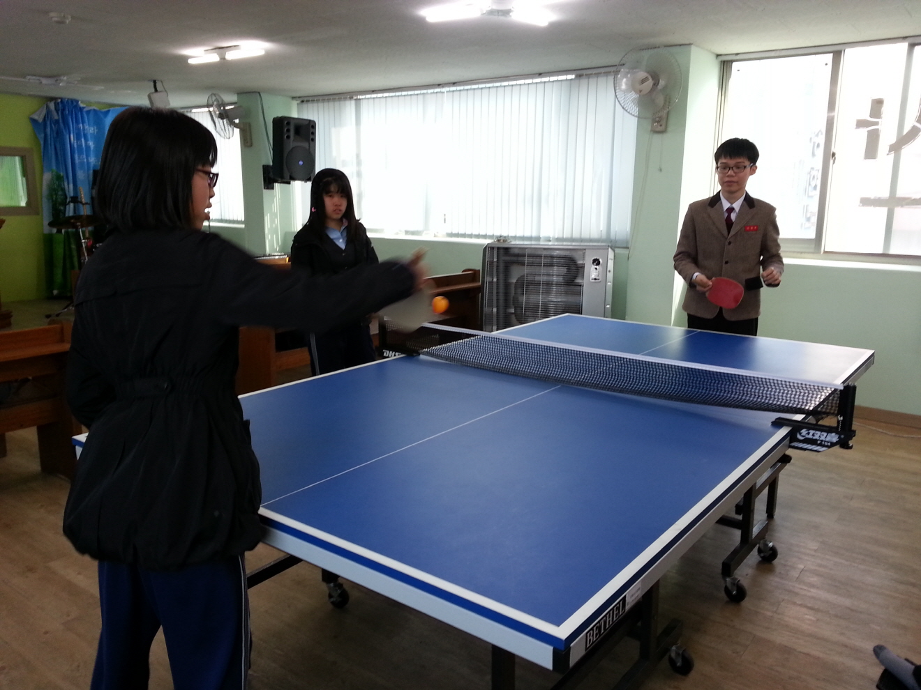 길주중학교 친구들과 같이 탁구치는 사진입니다.
