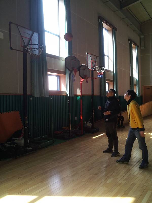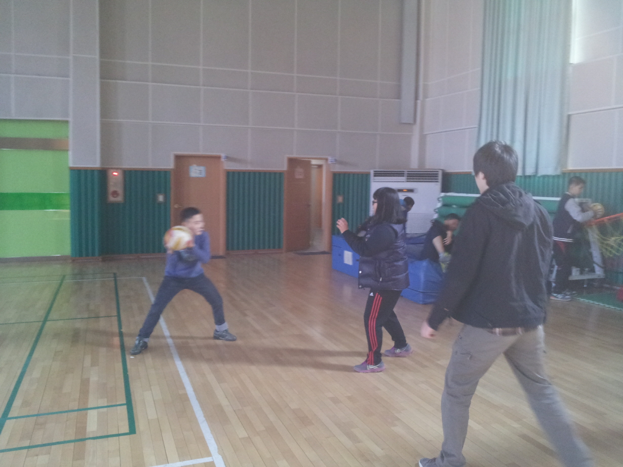 체육활동으로 농구와 학습활동으로 인사교육을 했습니다.